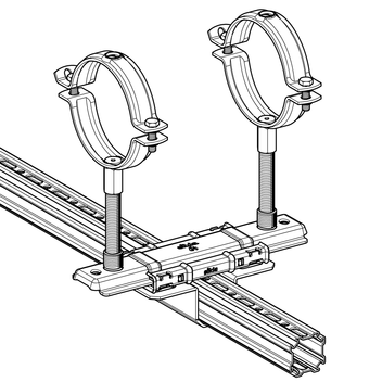 Patín bidireccional para apoyo simple ó doble de tubería y crear conjuntos guía sobre perfiles de montaje siMetrix PRO 46. Existen varias posibilidades de conexión según la carga solicitada a través de la rosca de conexión 3G: M10, M16 y 1/2".