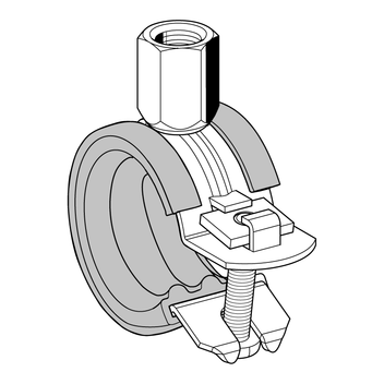 Collier à 1 vis avec raccord double-filetage M8/M10 pour la fixation de tuyauteries dans les installations courantes. Pour montage au mur, au sol et au plafond, adapté aux exigences d'isolation acoustique des tuyauteries et répondant jusqu'à la norme DIN 4109. Gains de temps de montage grâce au système de fermeture rapide.